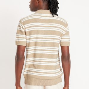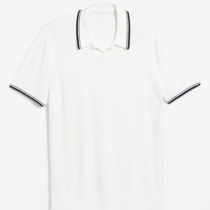 Tipped Collar Polo Sweater: spread collar, short sleeves, buttoned placket, pullover style, #802042