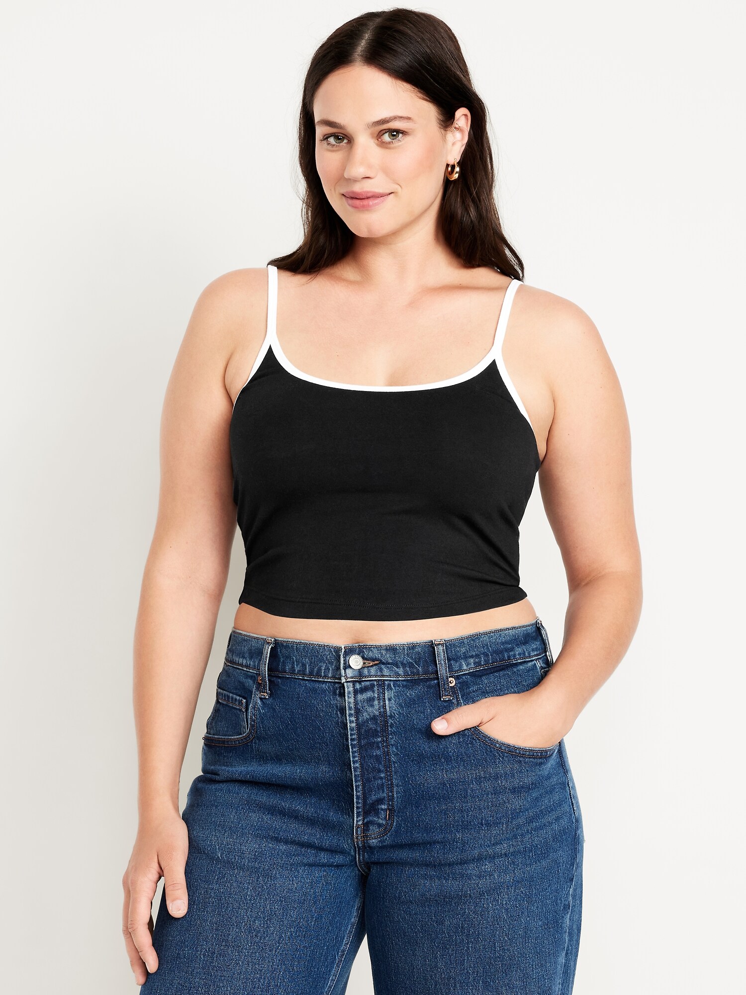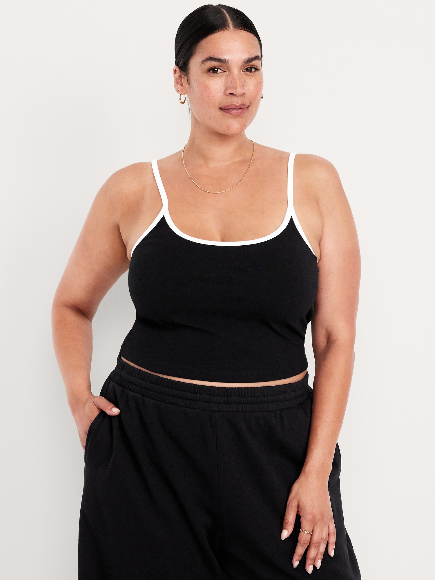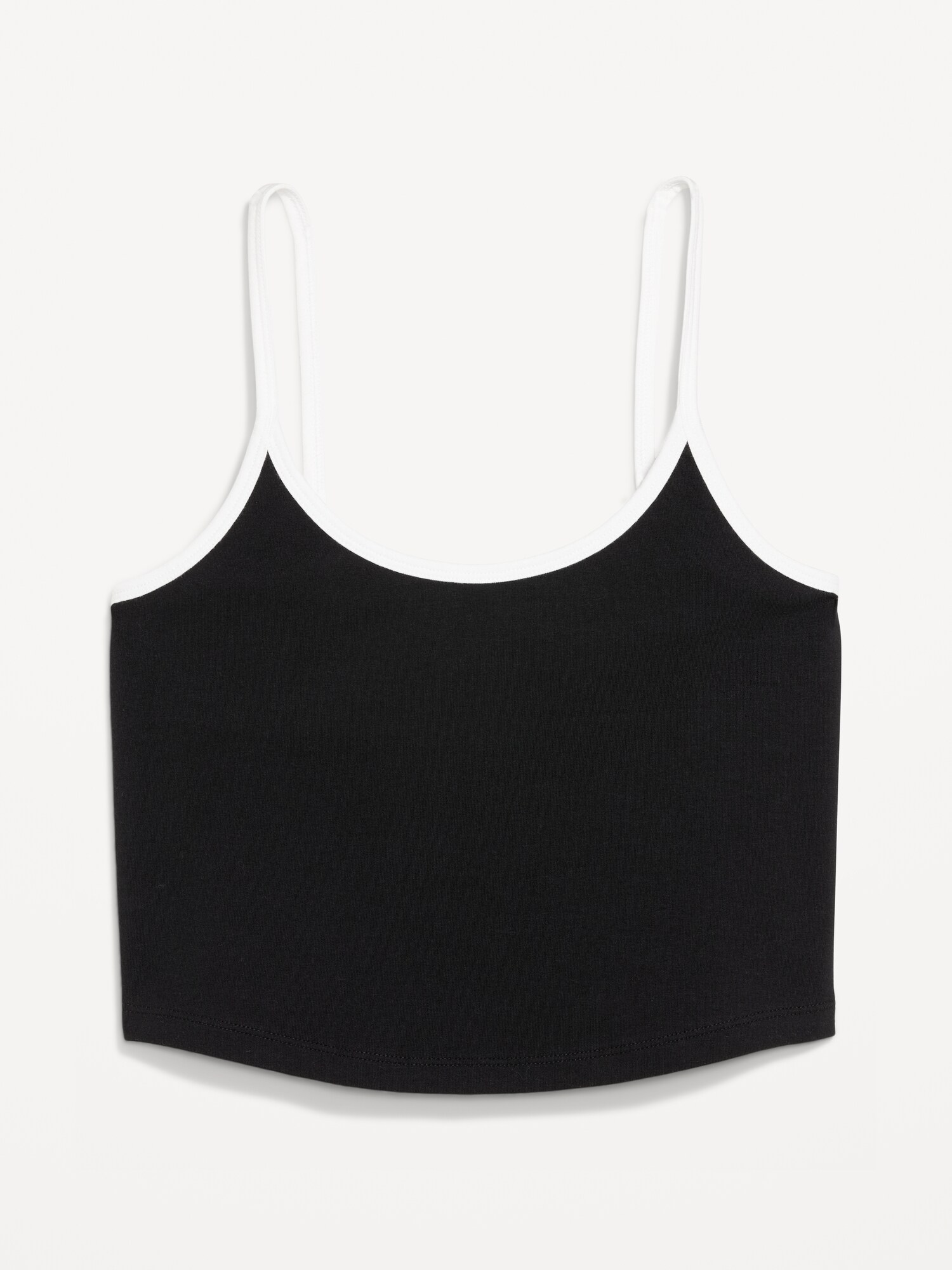 Tipped Jersey Cropped Brami Top: scoop neck, spaghetti straps, tipped trim, #844564