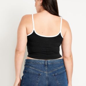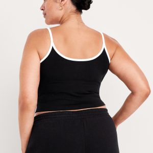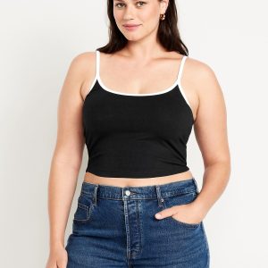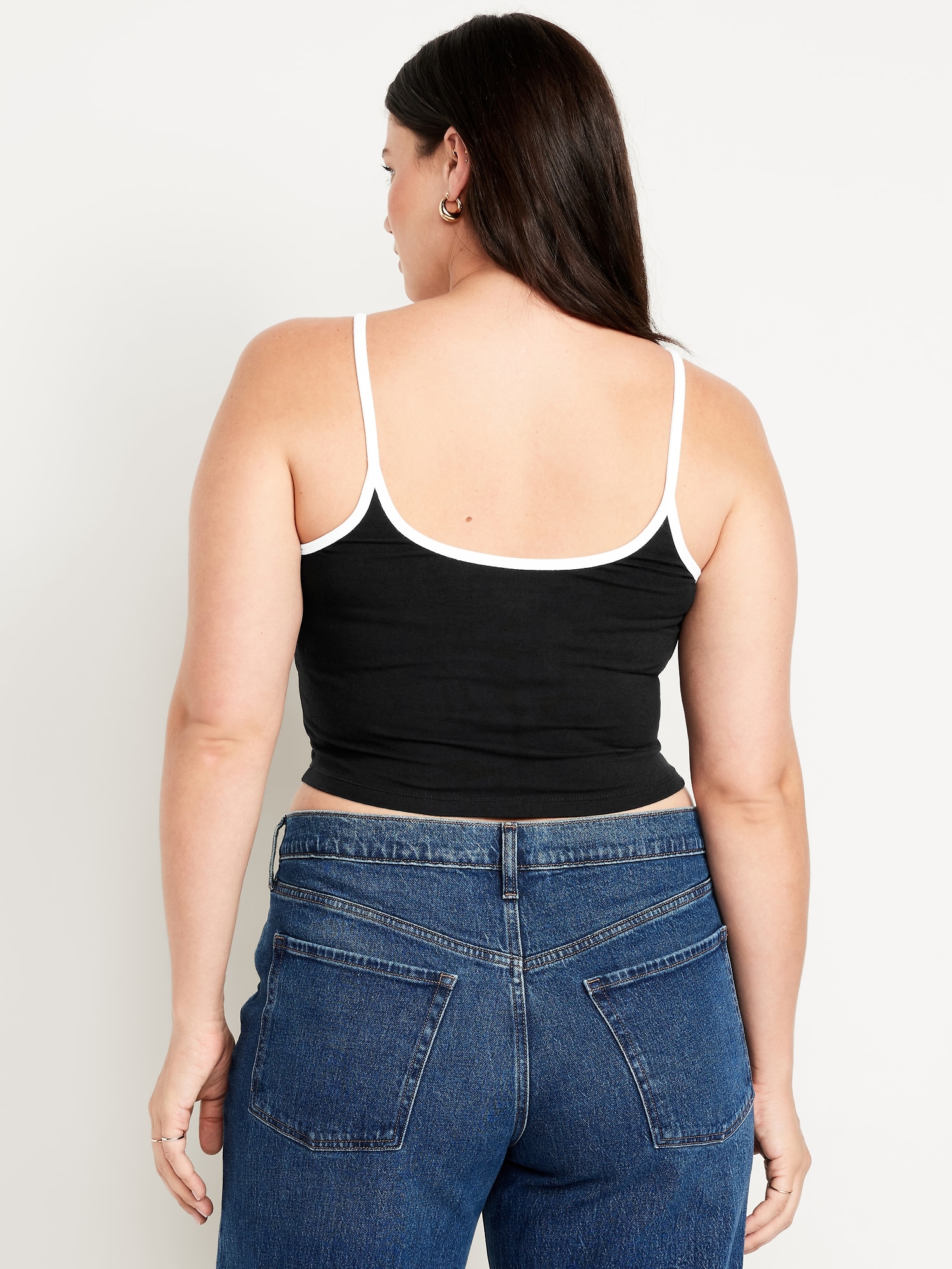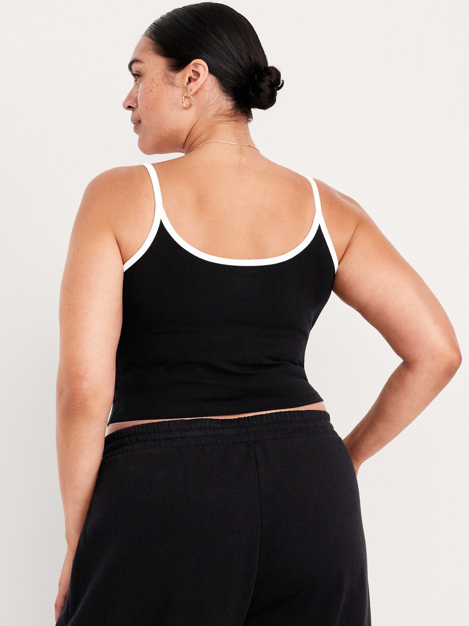 Tipped Jersey Cropped Brami Top: scoop neck, spaghetti straps, tipped trim, #844564