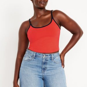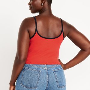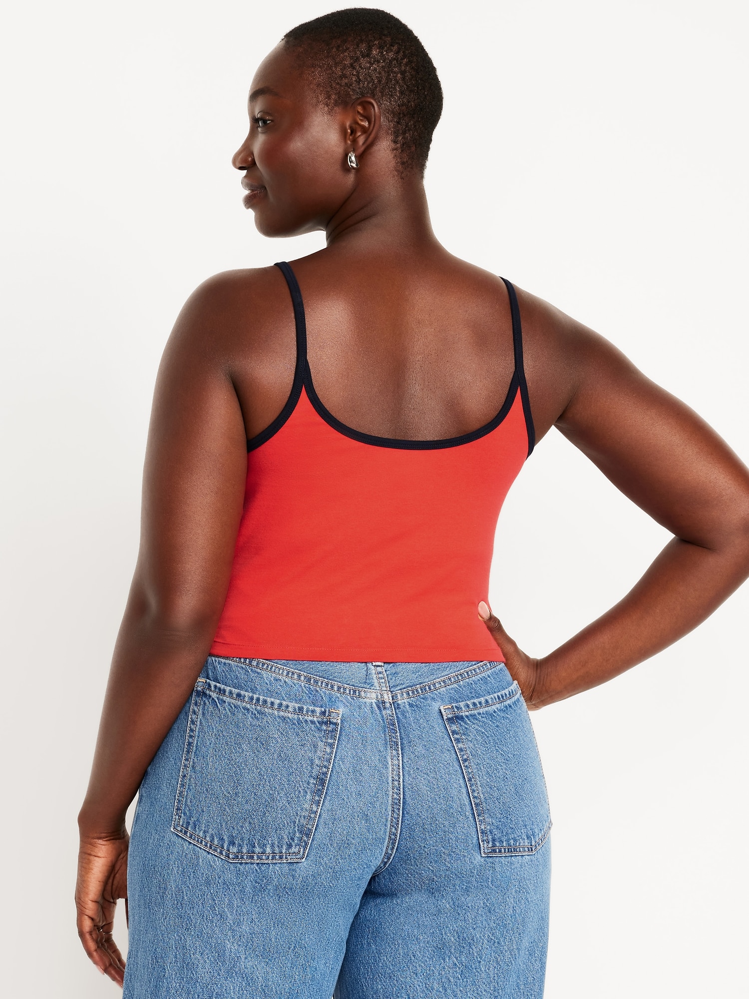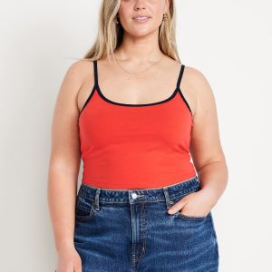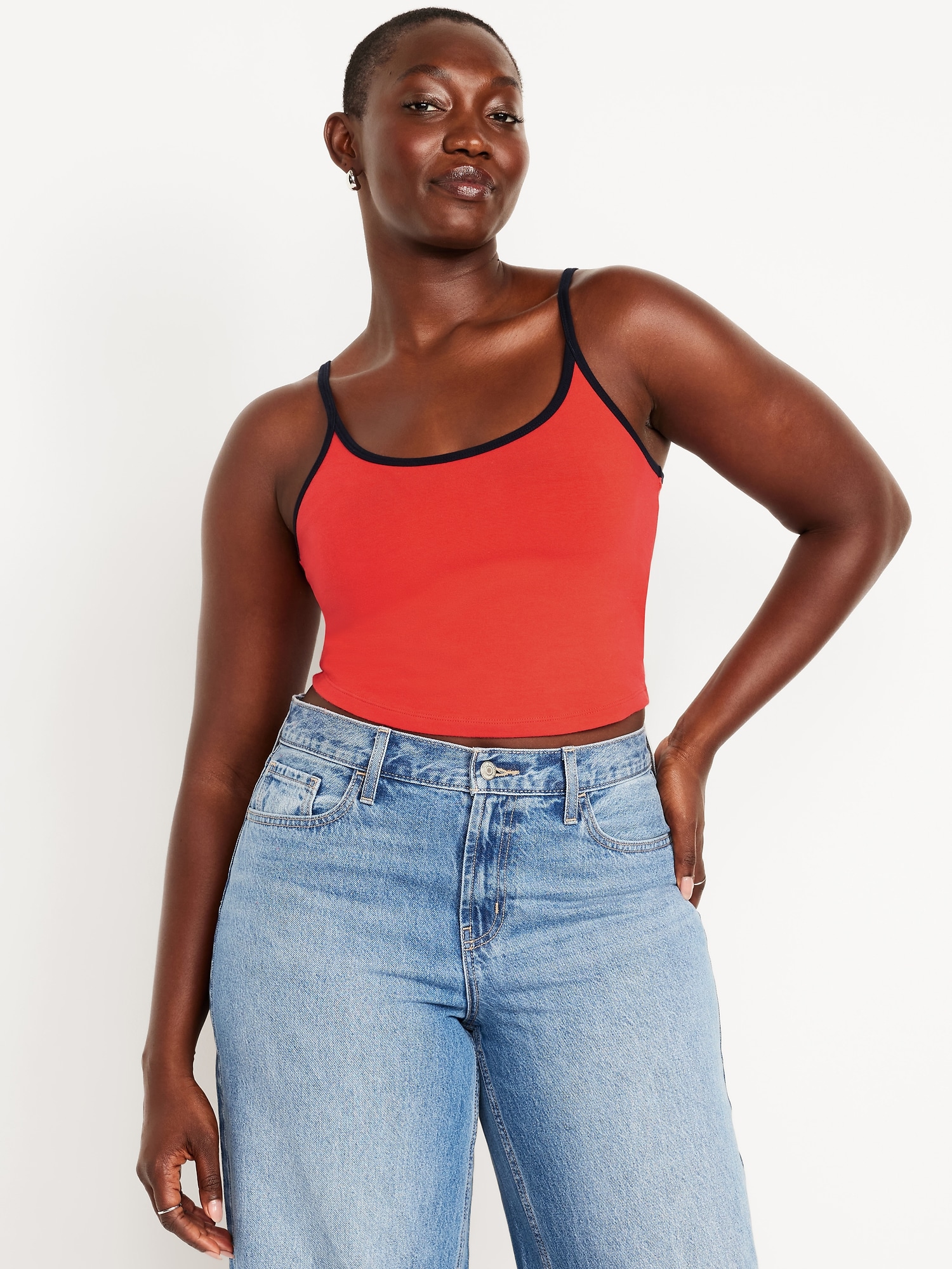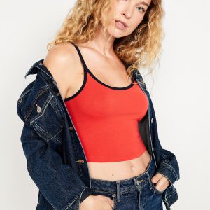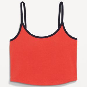 Tipped Jersey Cropped Brami Top: scoop neck, spaghetti straps, tipped trim, #844564