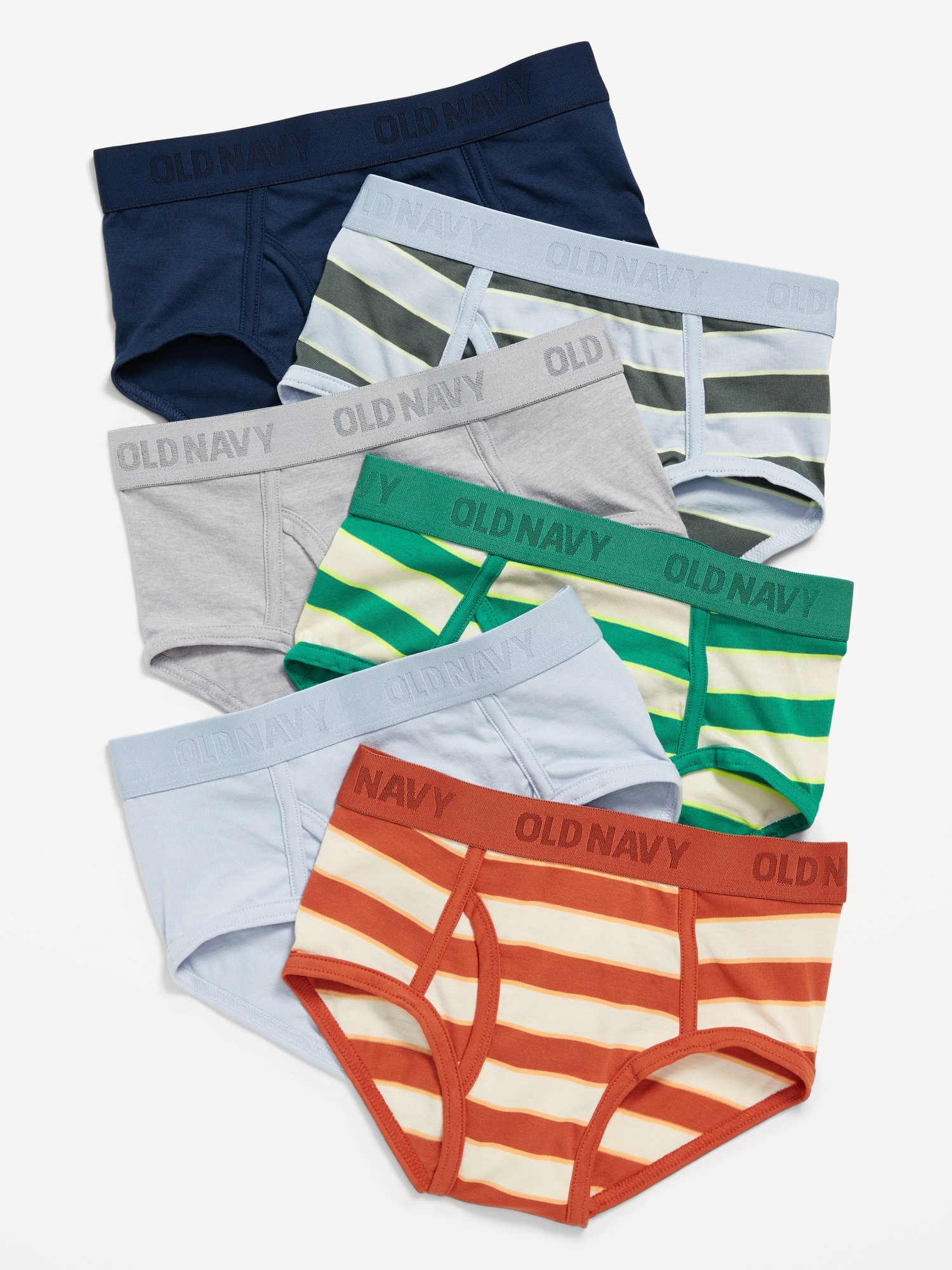 Underwear Briefs Variety 6-Pack for Boys: elastic waistband, repeating logo, fly front, rib-knit leg openings, #694344