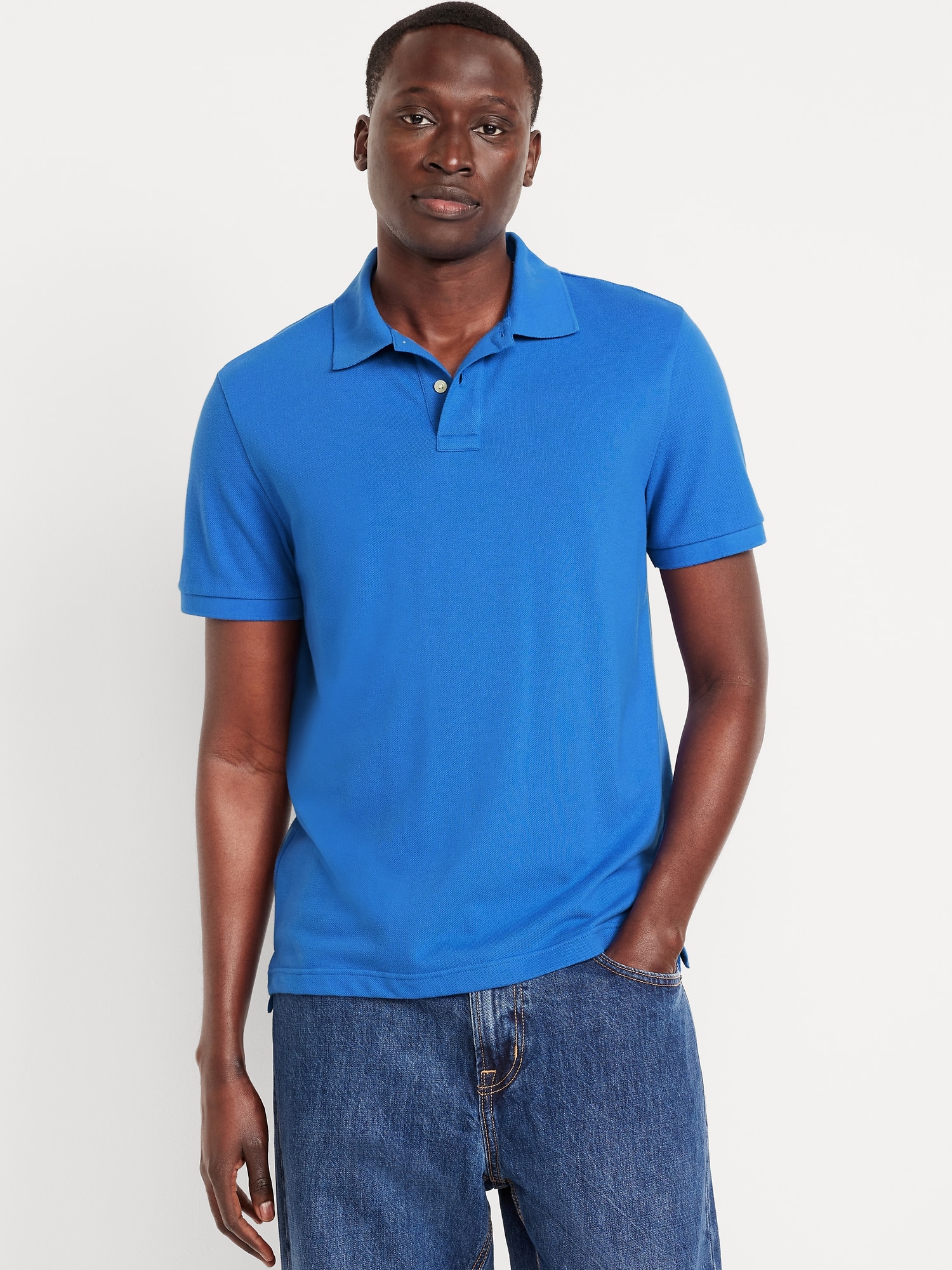 Uniform Pique Polo: New, updated fabric & fit., Rib-knit collar and short-sleeve openings., Two-button placket., Straight hem, with vented sides., Soft, medium-weight cotton pique., Tag-free for added comfort., #939350