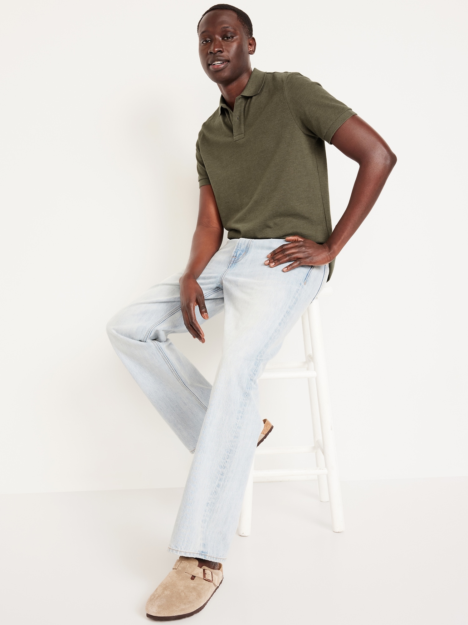 Uniform Pique Polo: New, updated fabric & fit., Rib-knit collar and short-sleeve openings., Two-button placket., Straight hem, with vented sides., Soft, medium-weight cotton pique., Tag-free for added comfort., #939350