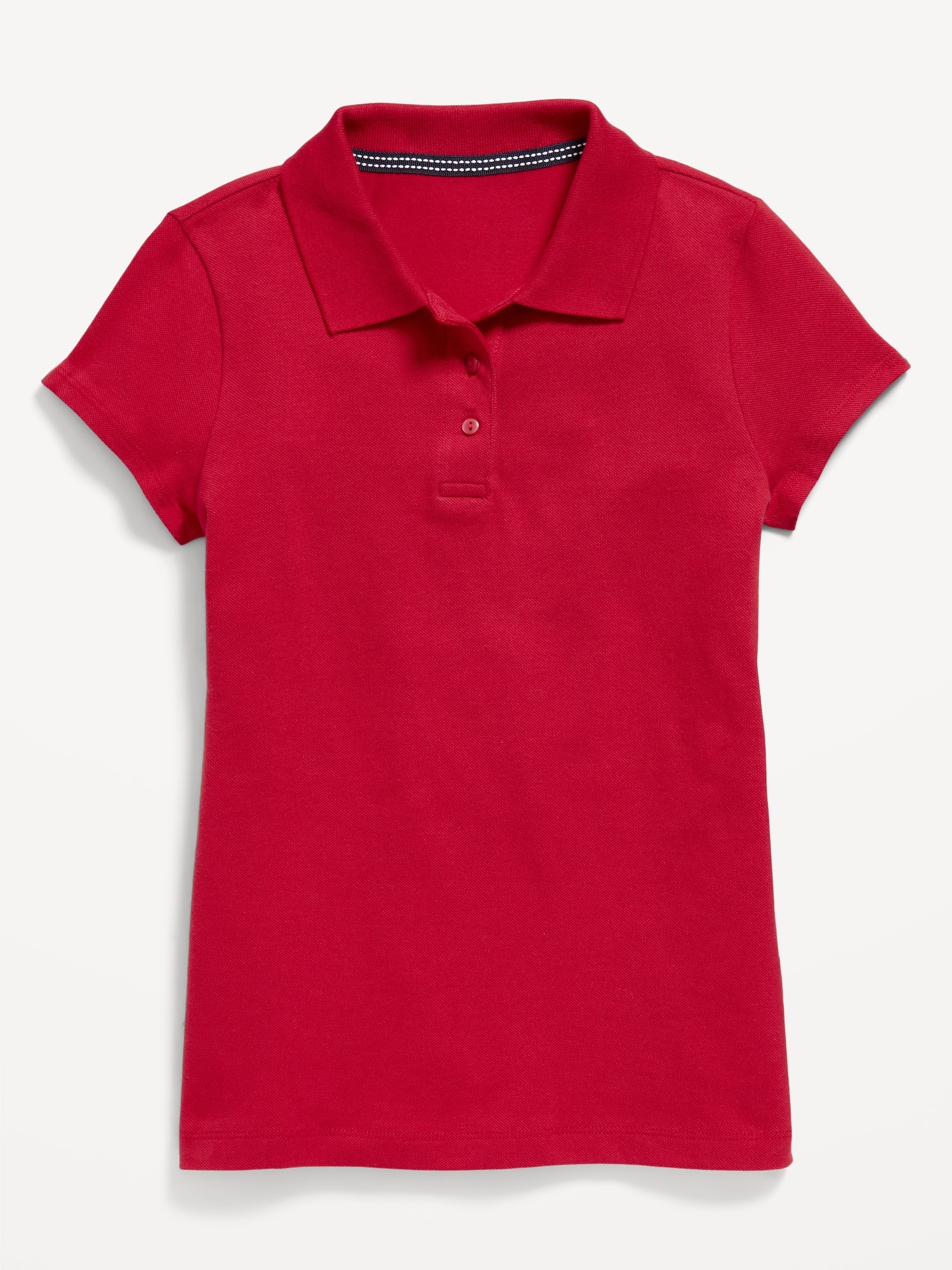 Uniform Pique Polo Shirt for Girls: Uniform Guarantee: Uniforms may be returned for a full refund with the original receipt for 365 days from the date of purchase.rib-knit collar, short sleeves, three-button placket, vented sides at hem, #658187