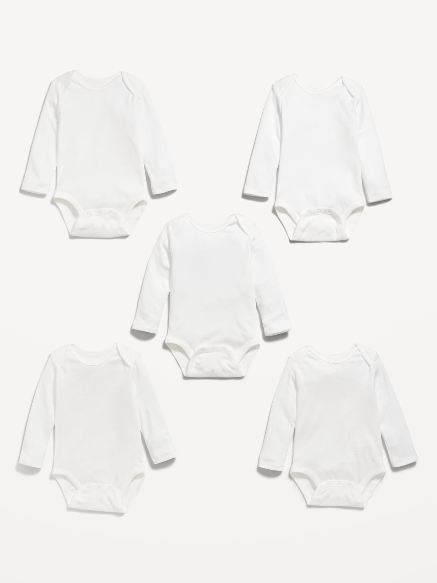 Unisex Bodysuit 5-Pack for Baby: envelope neckline, long sleeves, ring-snaps along the rib-knit inseam, online exclusive, #868817