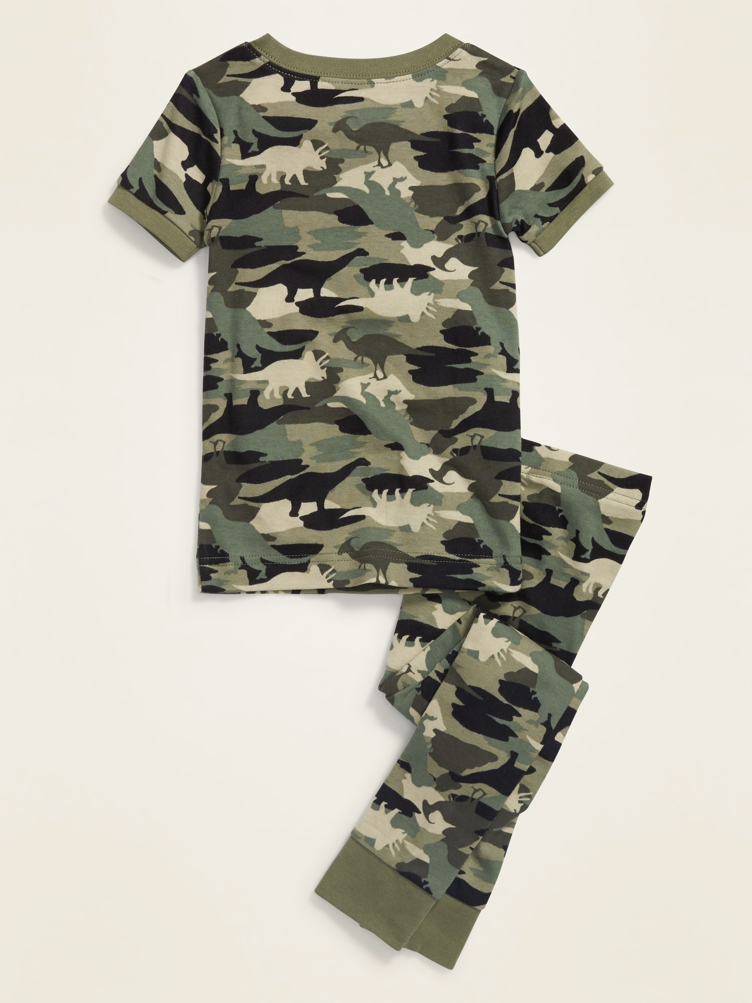 Unisex Camo-Dino Pajama Set for Toddler & Baby: rib-knit crew neck, short sleeves, pajama bottoms have elasticized waist, rib-knit cuffs, all-over print, #892275