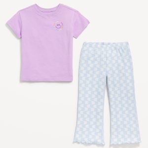 Unisex Snug-Fit Printed Pajama Set for Toddler & Baby: rib-knit crew neck, short sleeves, pajama bottoms have elasticized waist, rib-knit cuffs, all-over print, #892275
