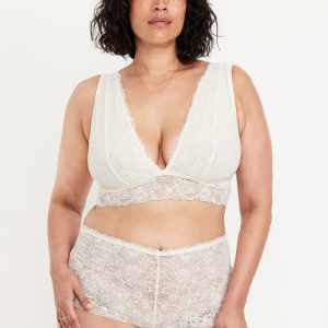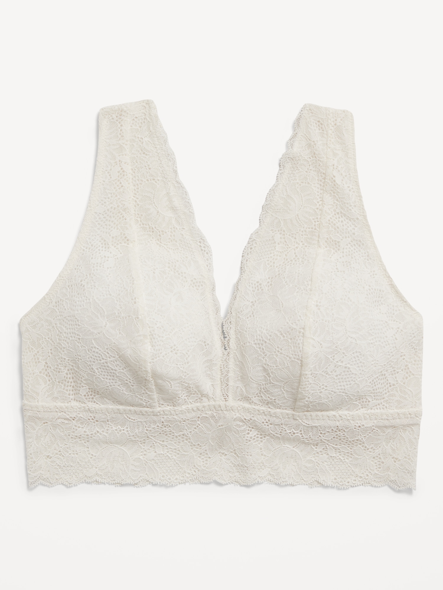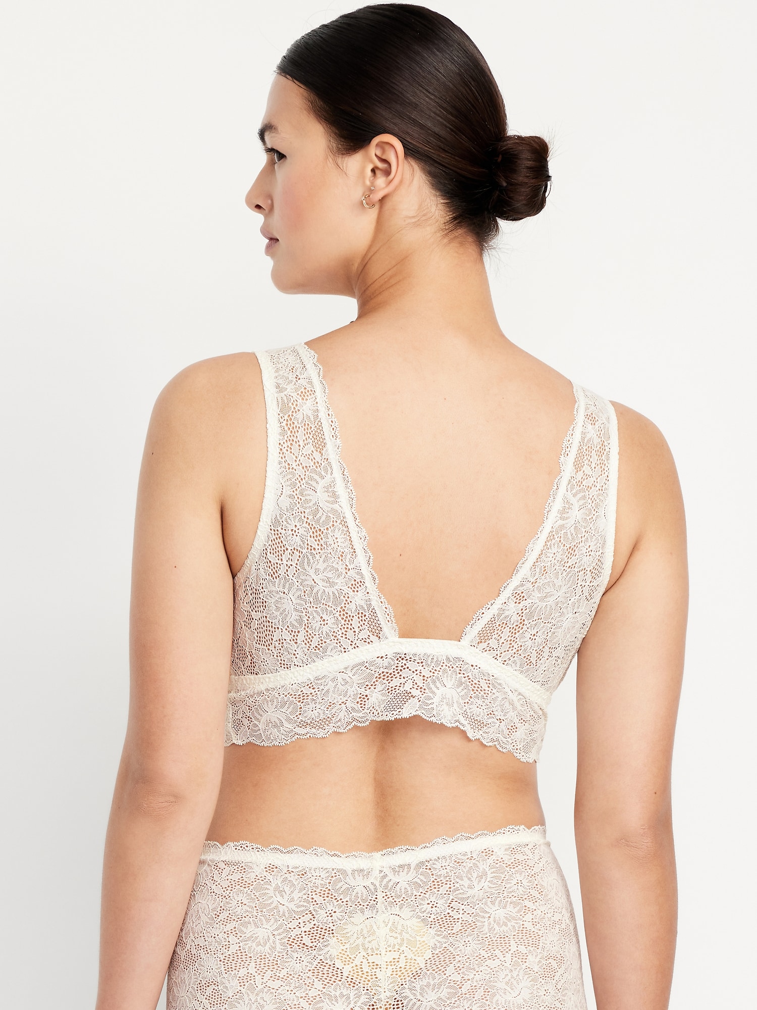 V-Neck Lace Bralette: plunging v-neck, wide straps, front mesh lining, elastic neckline and hem, #800563