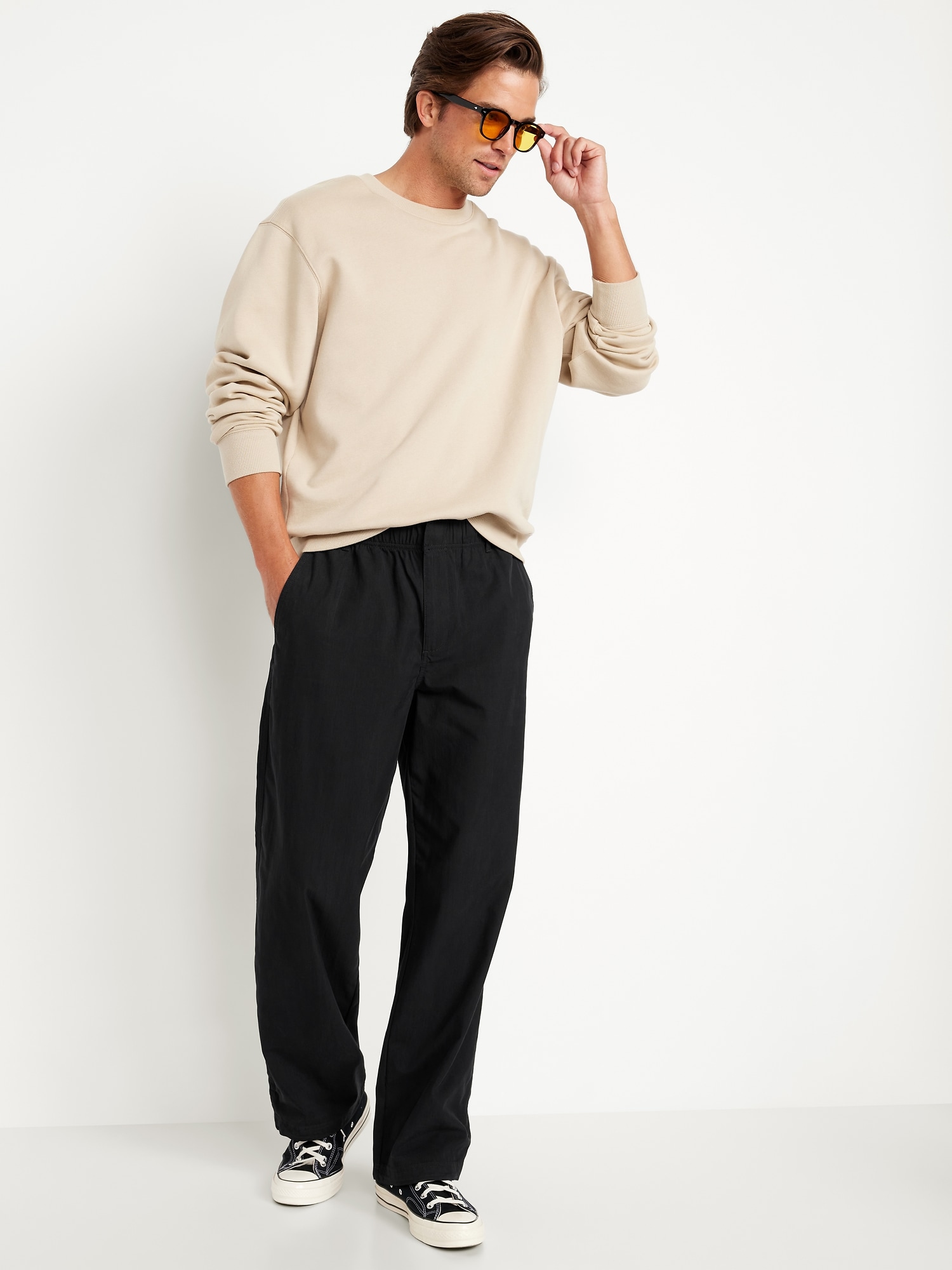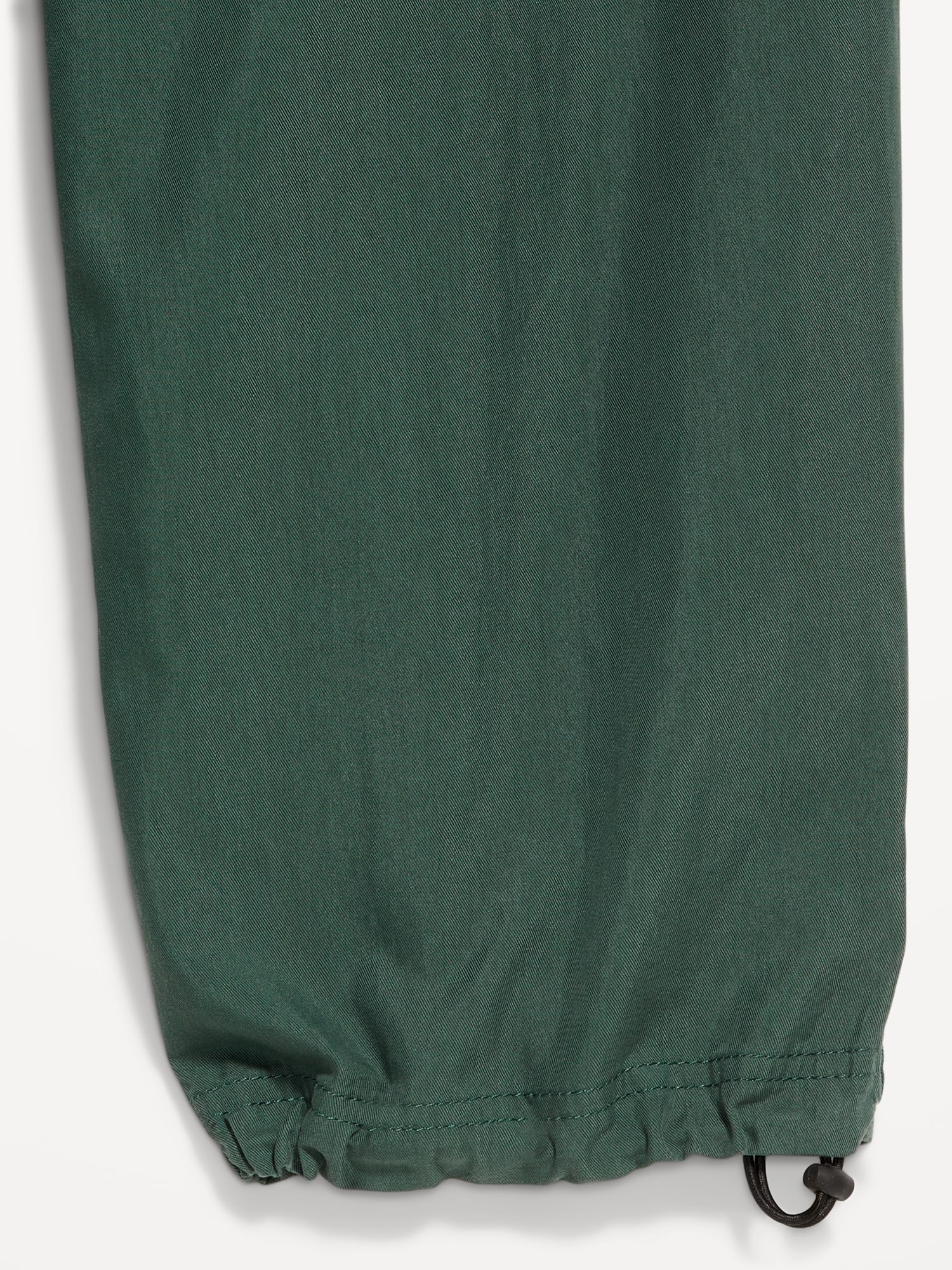 Vintage Baggy Parachute Pants: elastic-drawstring waistband, snap front, zip fly, diagonal front pockets, back welt pockets with hidden snaps, cinched drawcord hem, #784250