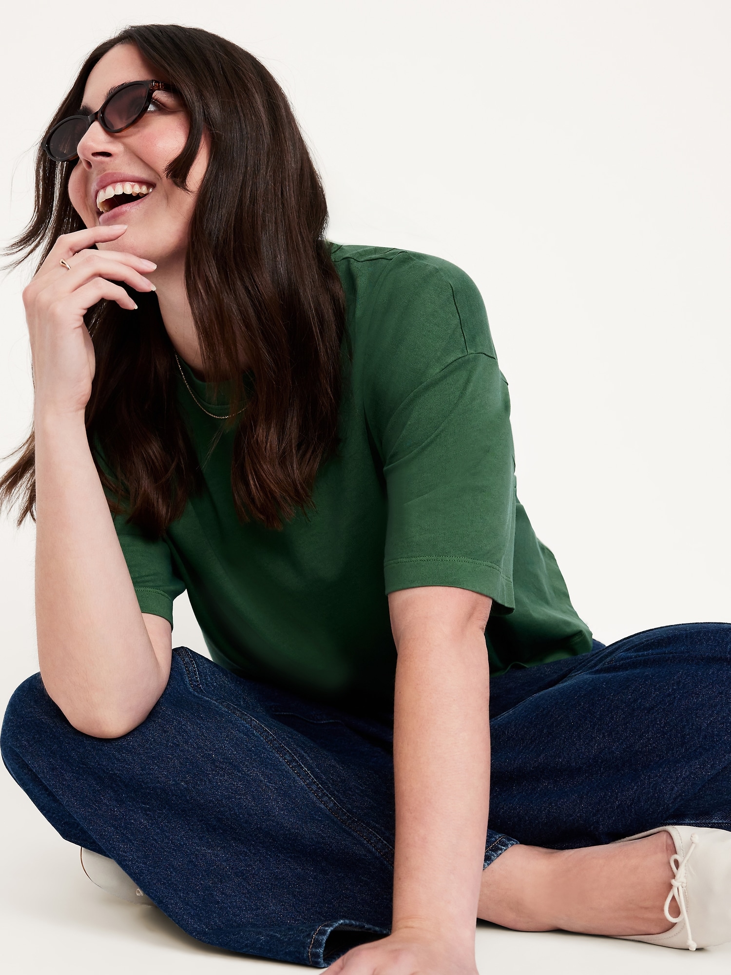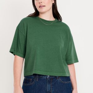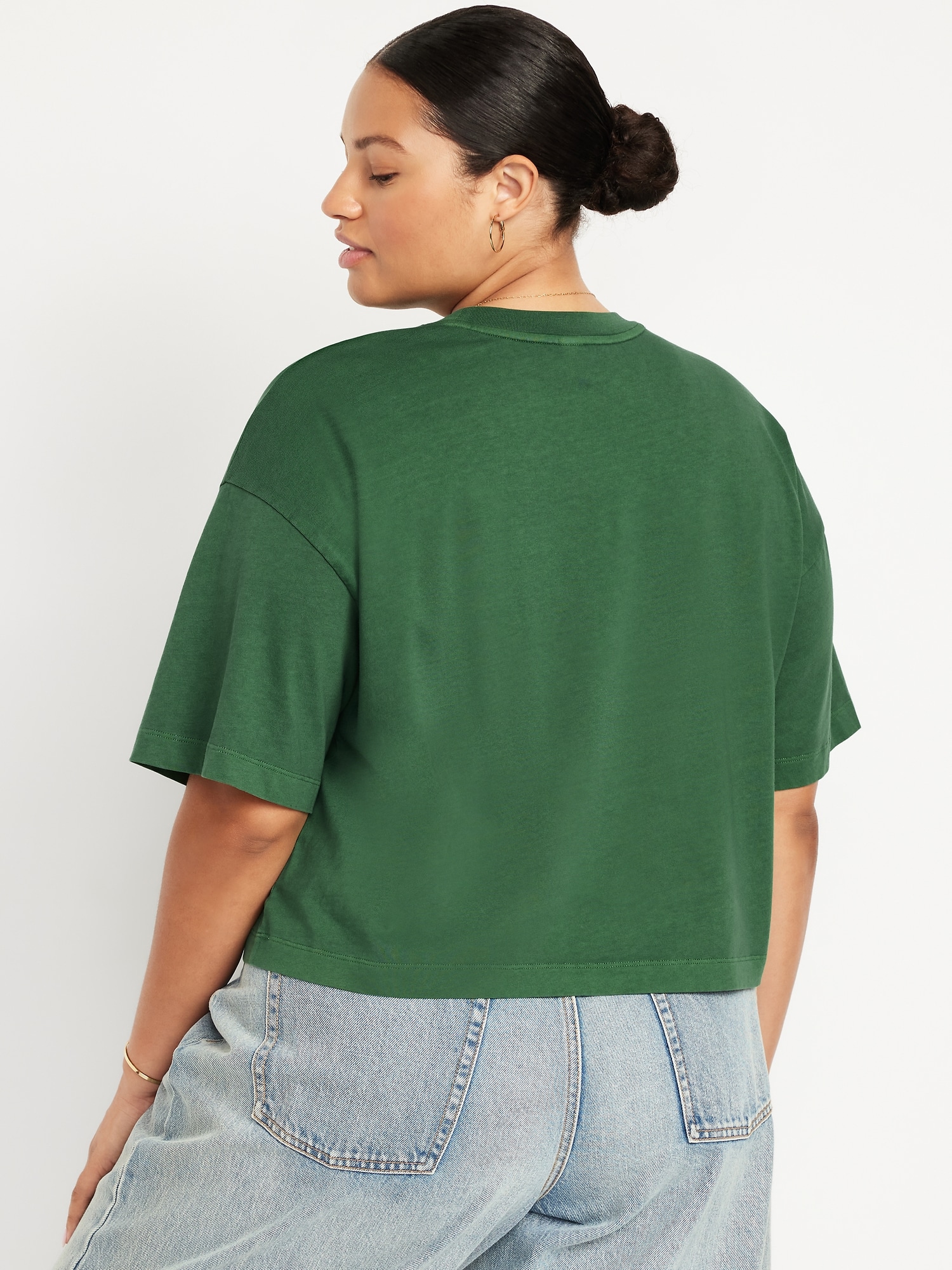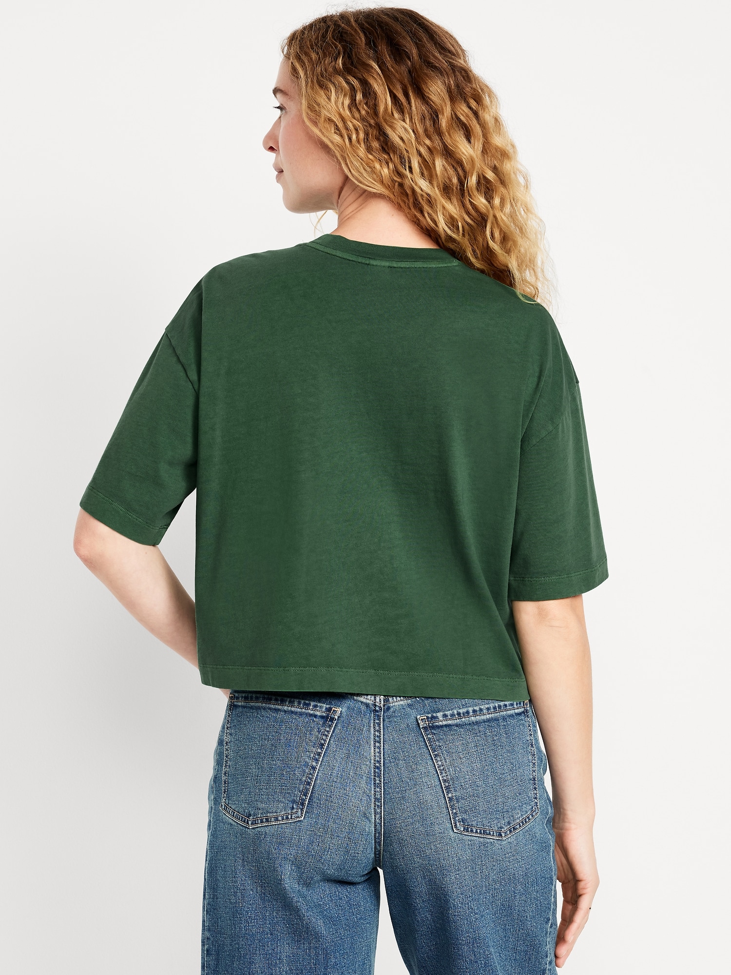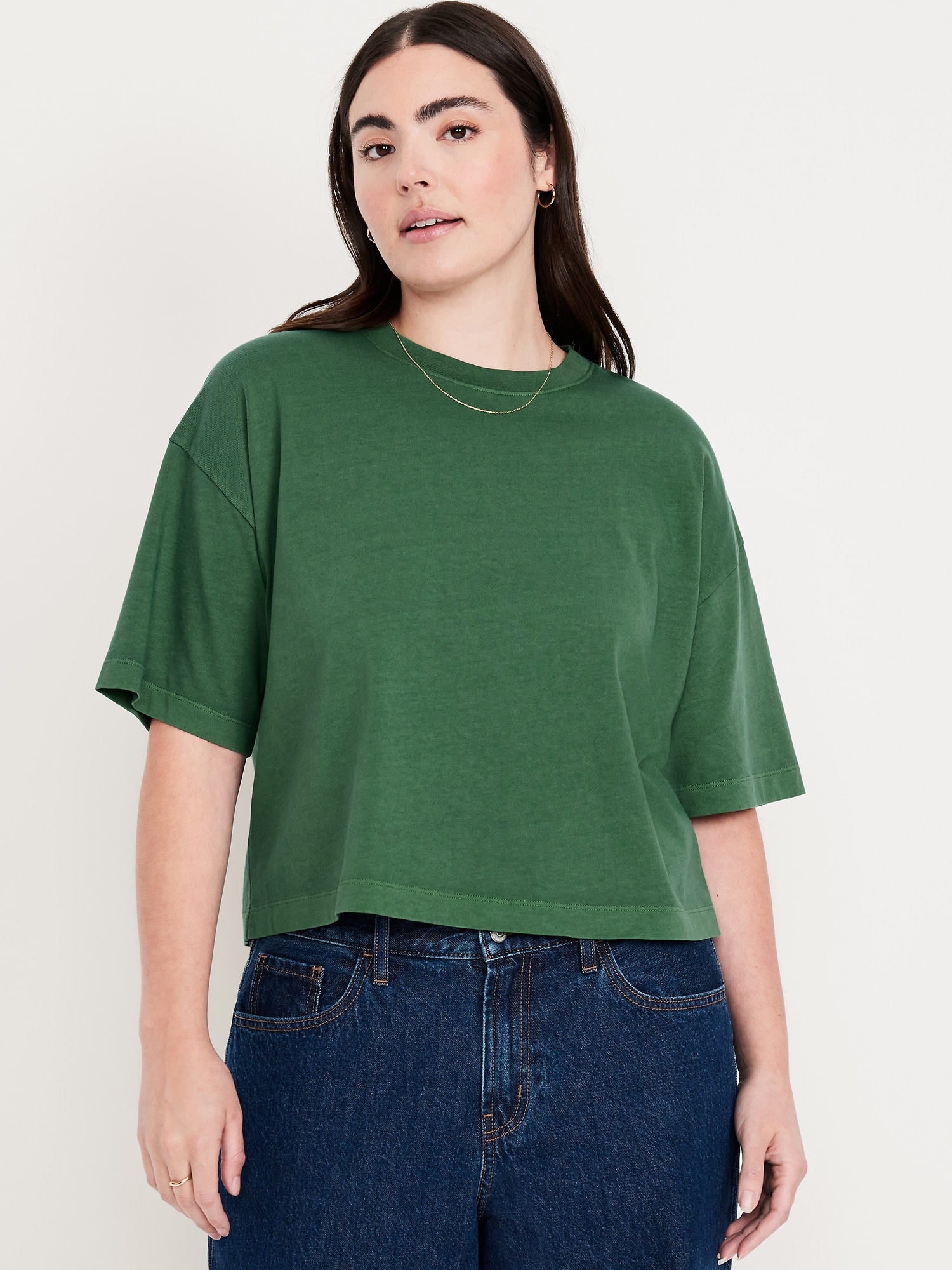 Vintage Crew-Neck Cropped T-Shirt: A super relaxed fit with lived-in feels.rib-knit crew neck, elbow-length sleeves, #804817