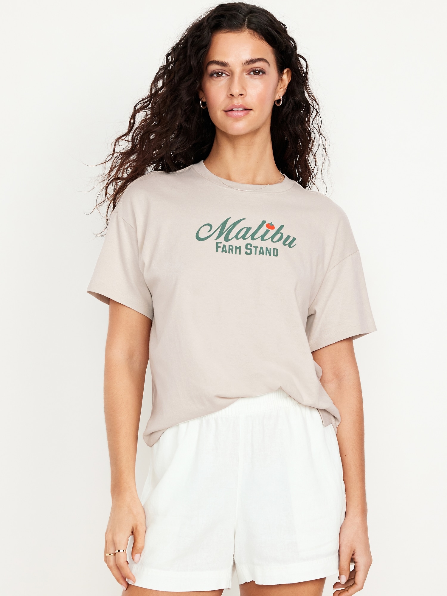 Vintage Crew-Neck Graphic T-Shirt: A super relaxed fit with lived-in feels.rib-knit crew neck, short drop-shoulder sleeves, #537388