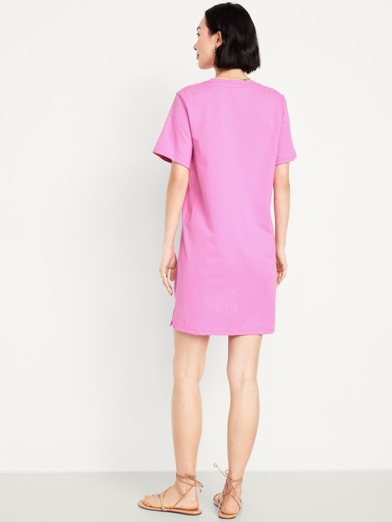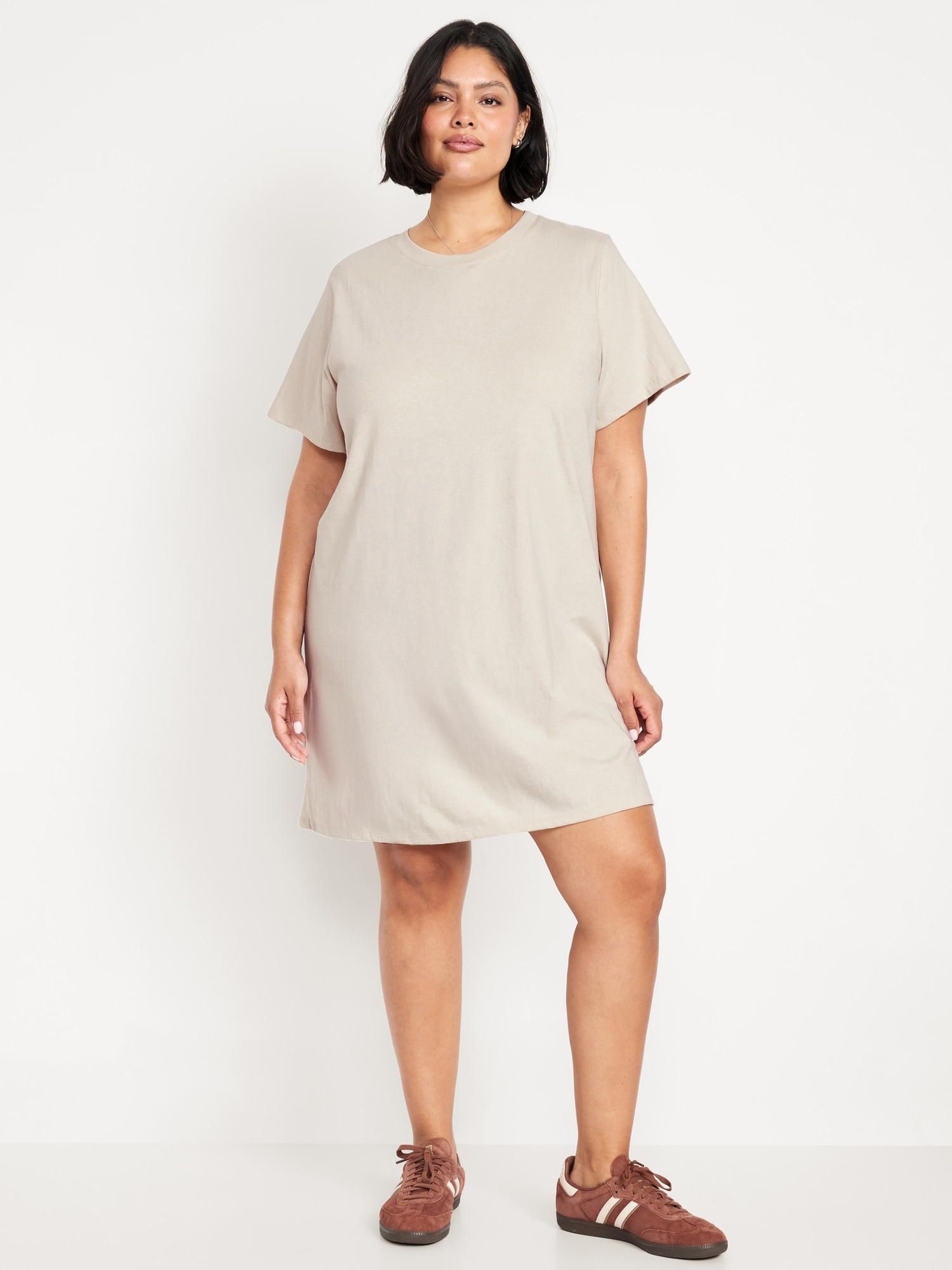 Vintage Crew-Neck Mini T-Shirt Dress: A super relaxed fit with lived-in feels.rib-knit crew neck, short sleeves, striped print, #705238