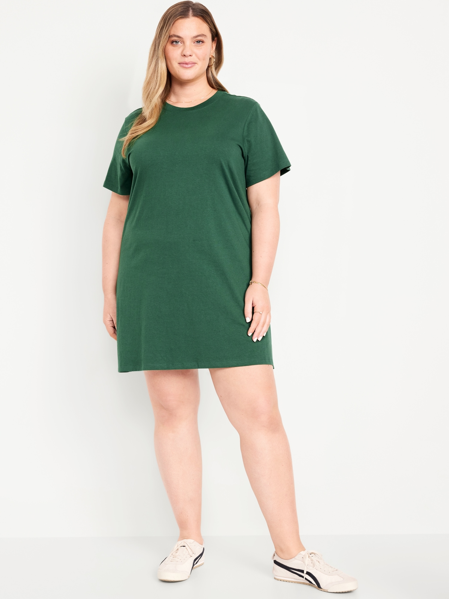 Vintage Crew-Neck Mini T-Shirt Dress: A super relaxed fit with lived-in feels.rib-knit crew neck, short sleeves, striped print, #705238