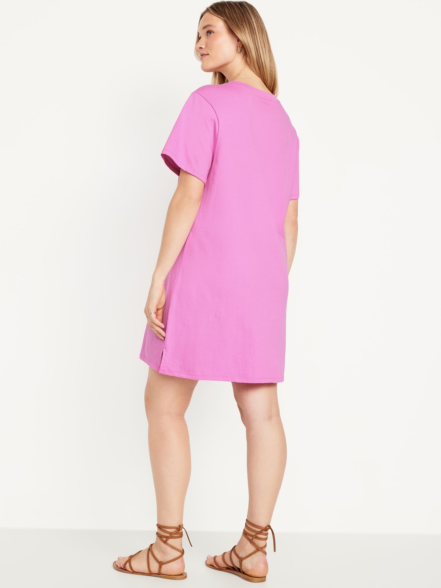 Vintage Crew-Neck Mini T-Shirt Dress: A super relaxed fit with lived-in feels.rib-knit crew neck, short sleeves, #705142