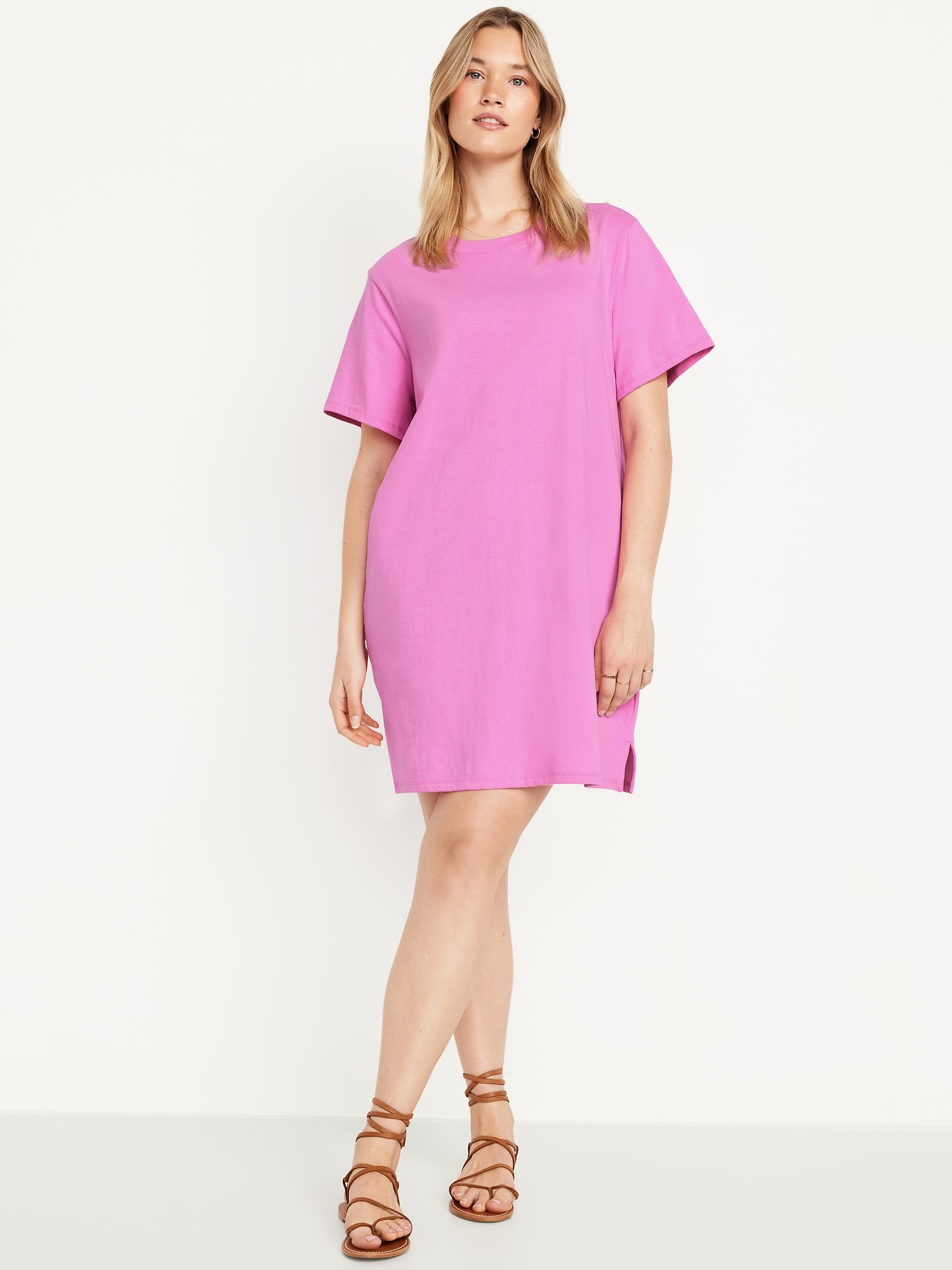 Vintage Crew-Neck Mini T-Shirt Dress: A super relaxed fit with lived-in feels.rib-knit crew neck, short sleeves, striped print, #705238