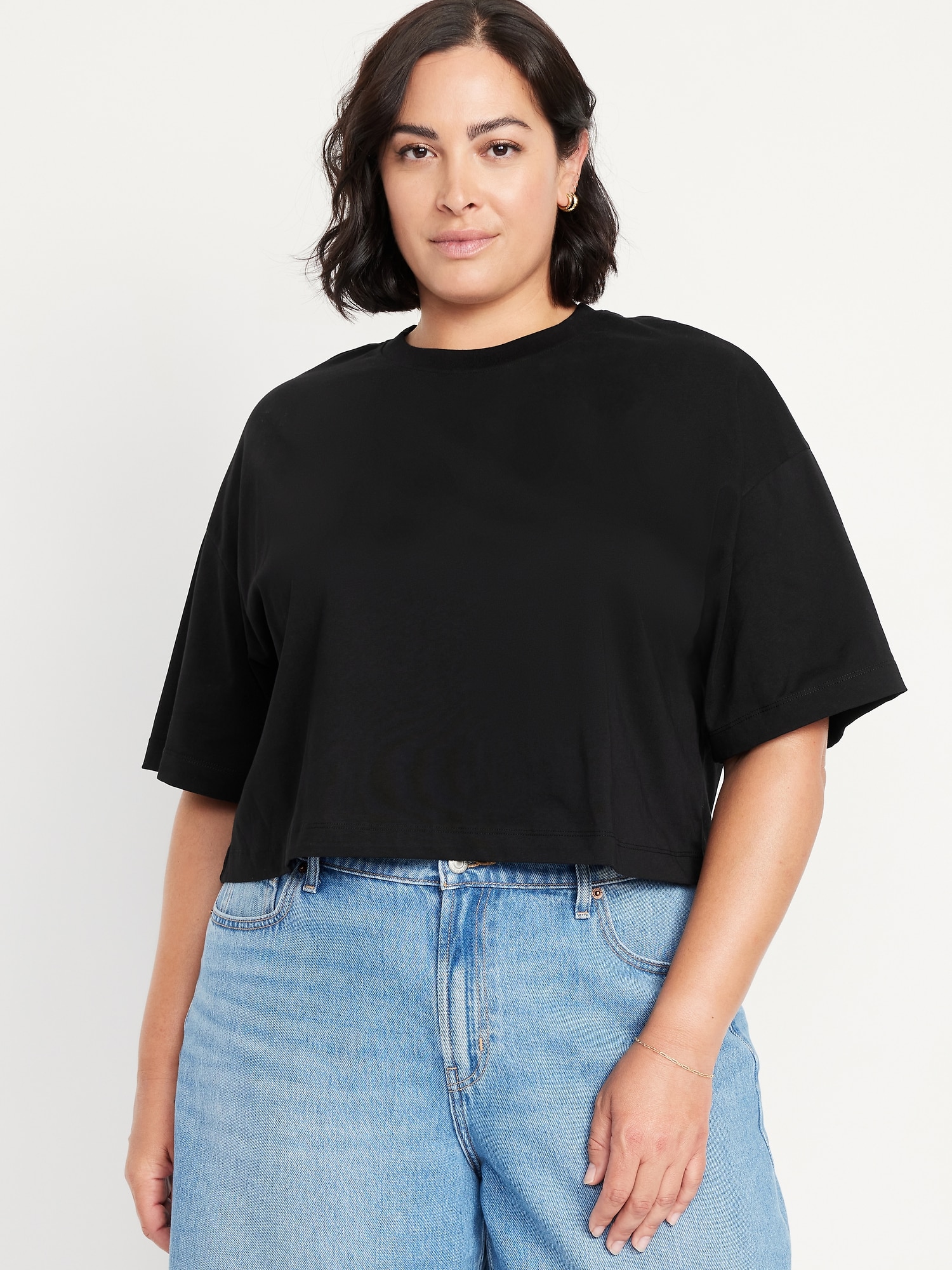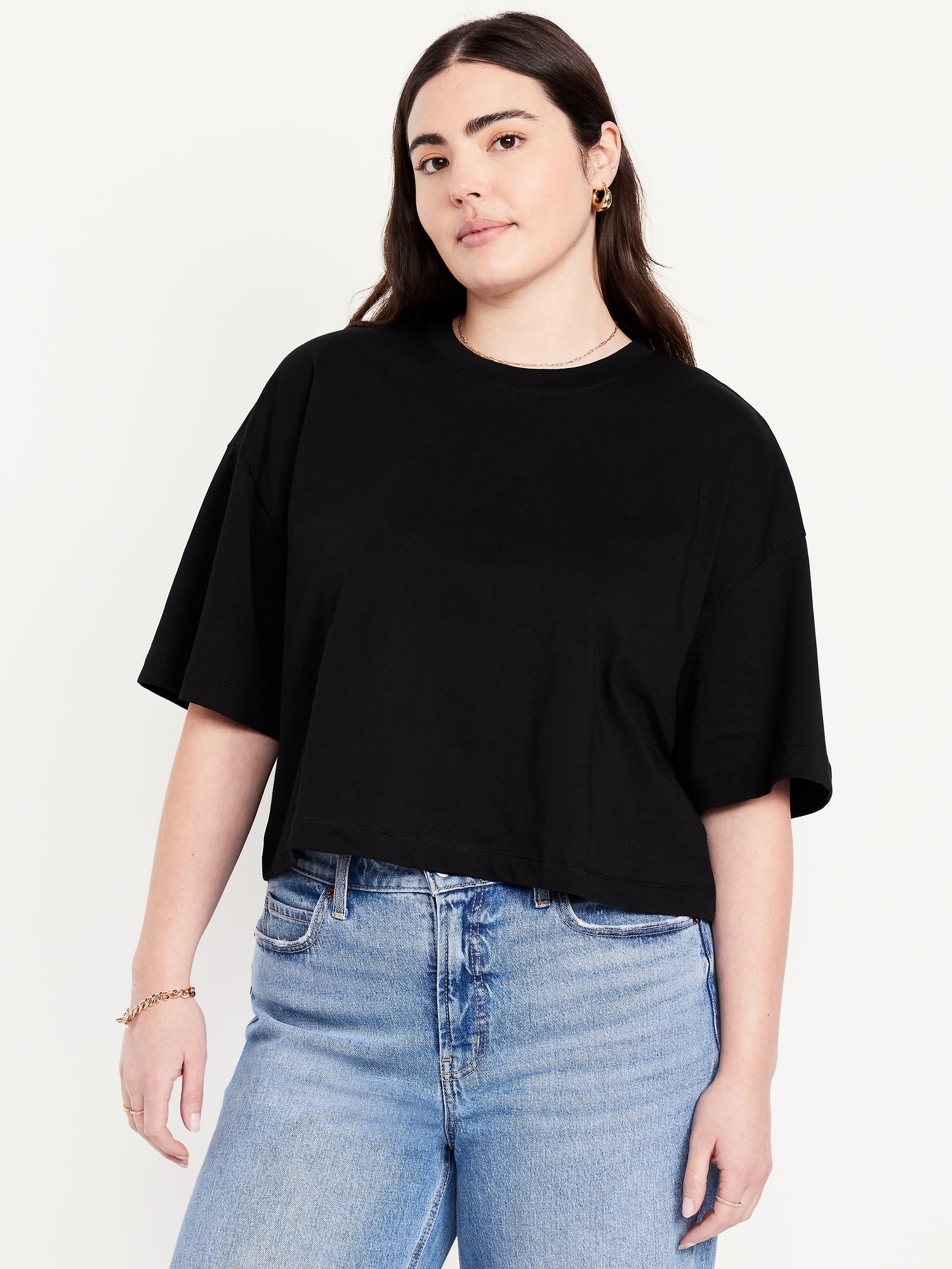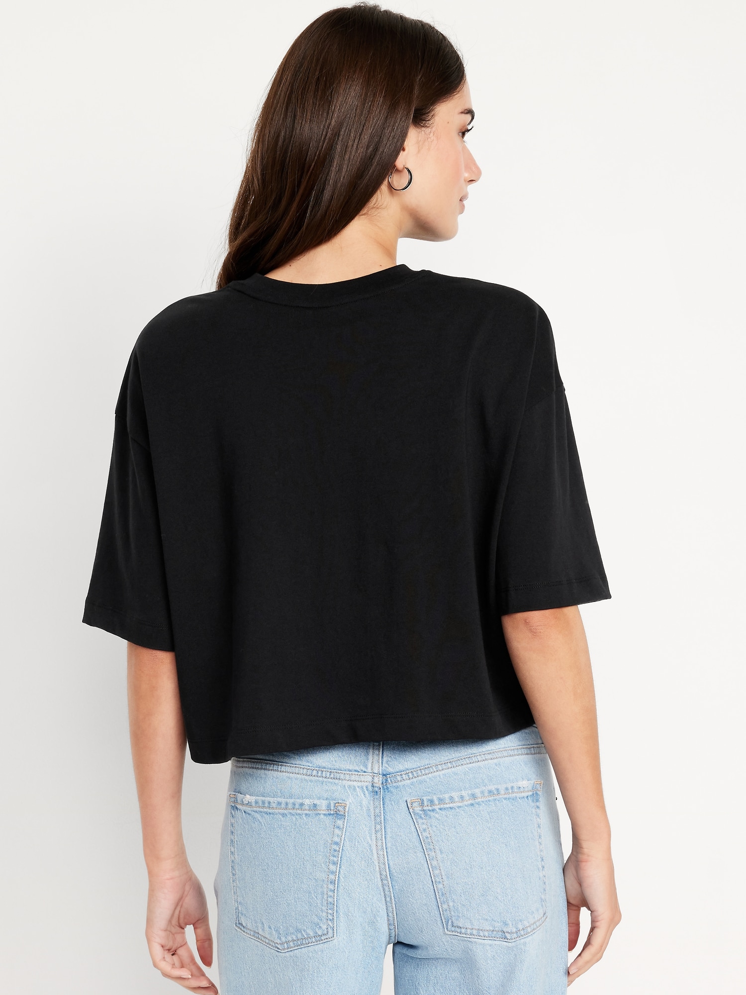 Vintage Crew-Neck Oversized Crop T-Shirt