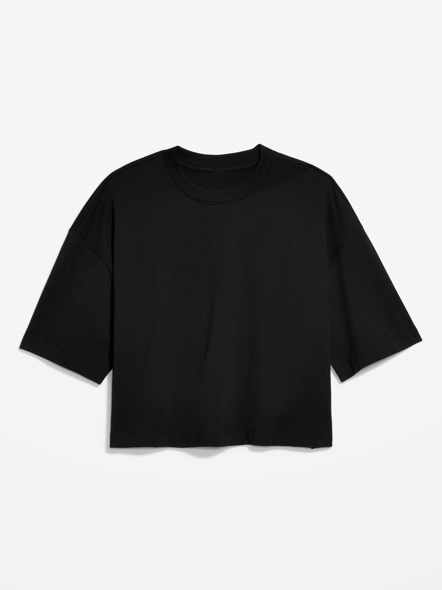 Vintage Crew-Neck Oversized Crop T-Shirt: A super relaxed fit with lived-in feels.rib-knit crew neck, elbow-length drop-shoulder sleeves, #693059