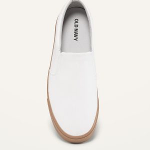 Water-Repellent Canvas Slip-On Sneakers: Soft, durable canvas upper, with webbed-elastic side goring., Cushioned insoles made with memory foam. Like walking on fluffy little clouds., Contrasting thermoplastic rubber midsole and textured outsole., These sneakers are water- and stain-repellent. Take that, rain and dirt., Easy slip-on style., #883622