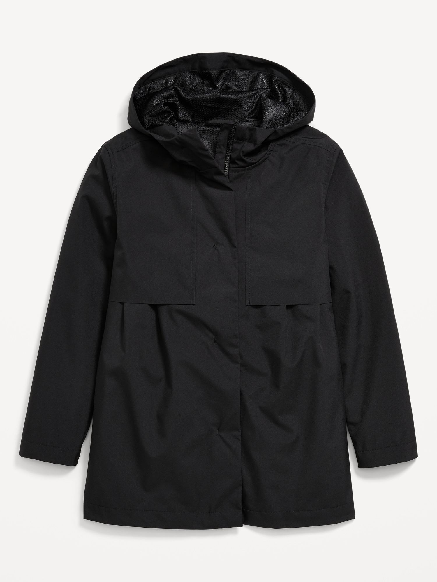 Water-Resistant Hooded Jacket for Girls: built-in hood, long sleeves, full length zipper, water resistant shell, #802956