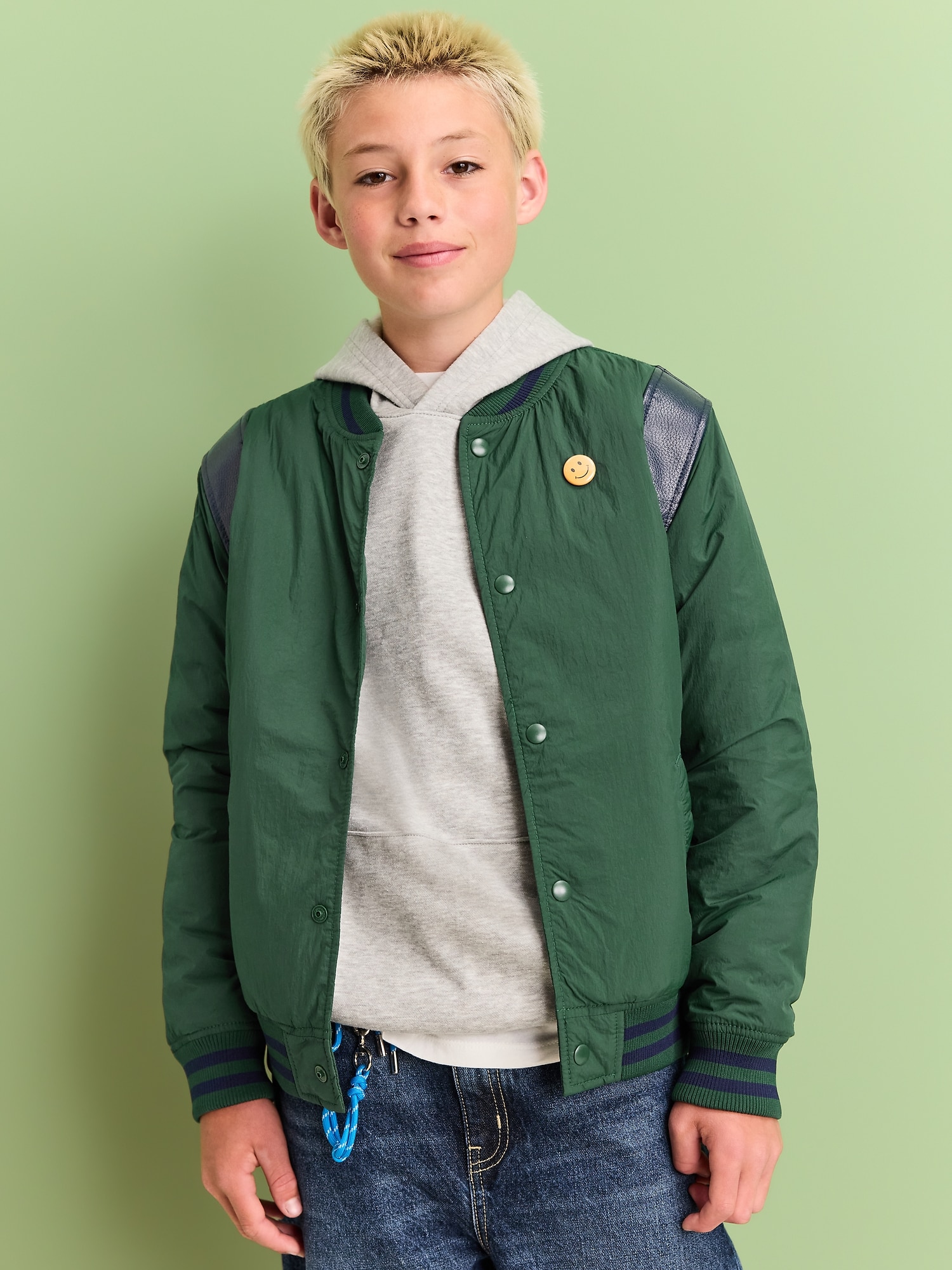 Water-Resistant Vintage-Style Bomber Jacket for Boys