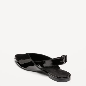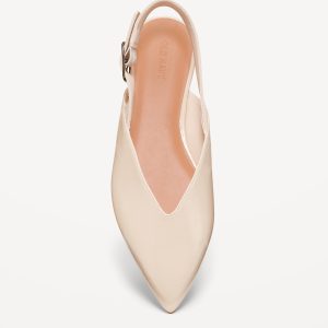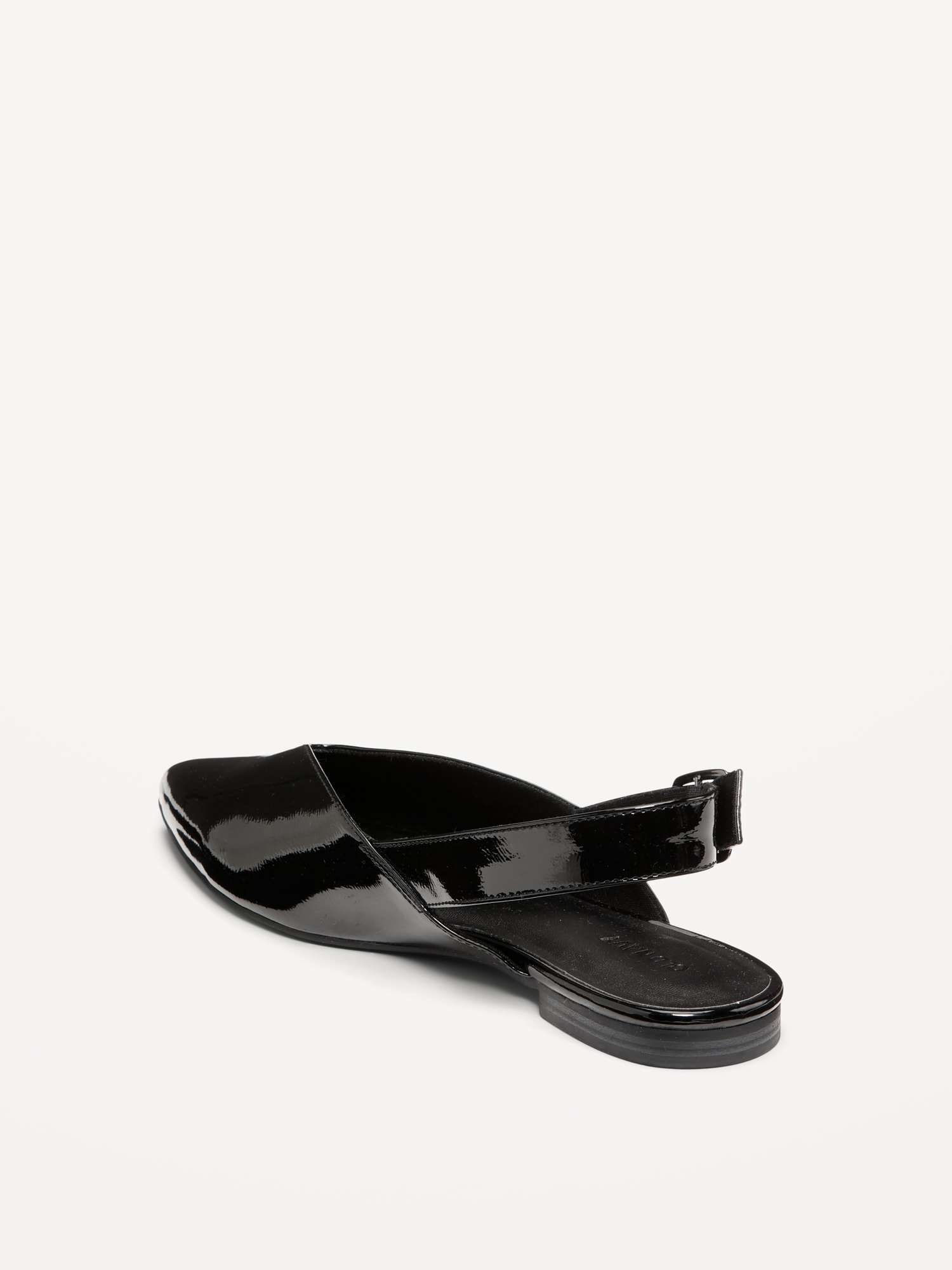 Wide Strap Slingback Flats: pointed toe, V-cut, buckle fastening at ankle, open heel, firm foot bed, textured outsole, #750760