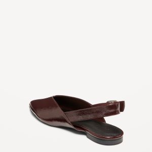 Wide Strap Slingback Flats: pointed toe, V-cut, buckle fastening at ankle, open heel, firm foot bed, textured outsole, #750760