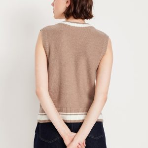 Wool-Blend Cable-Knit Vest: v-neck, cable-knit front, rib-knit trim, #785030
