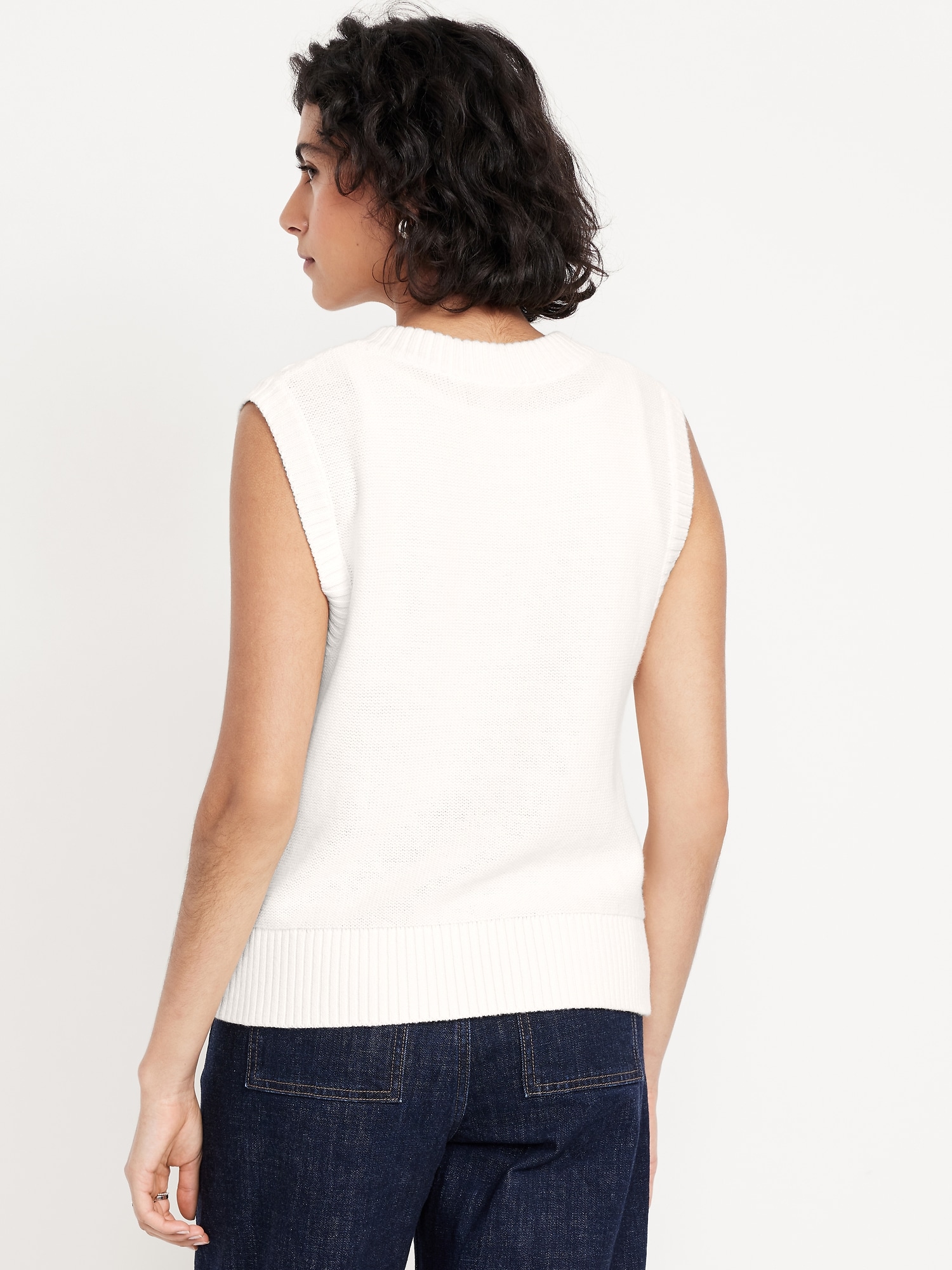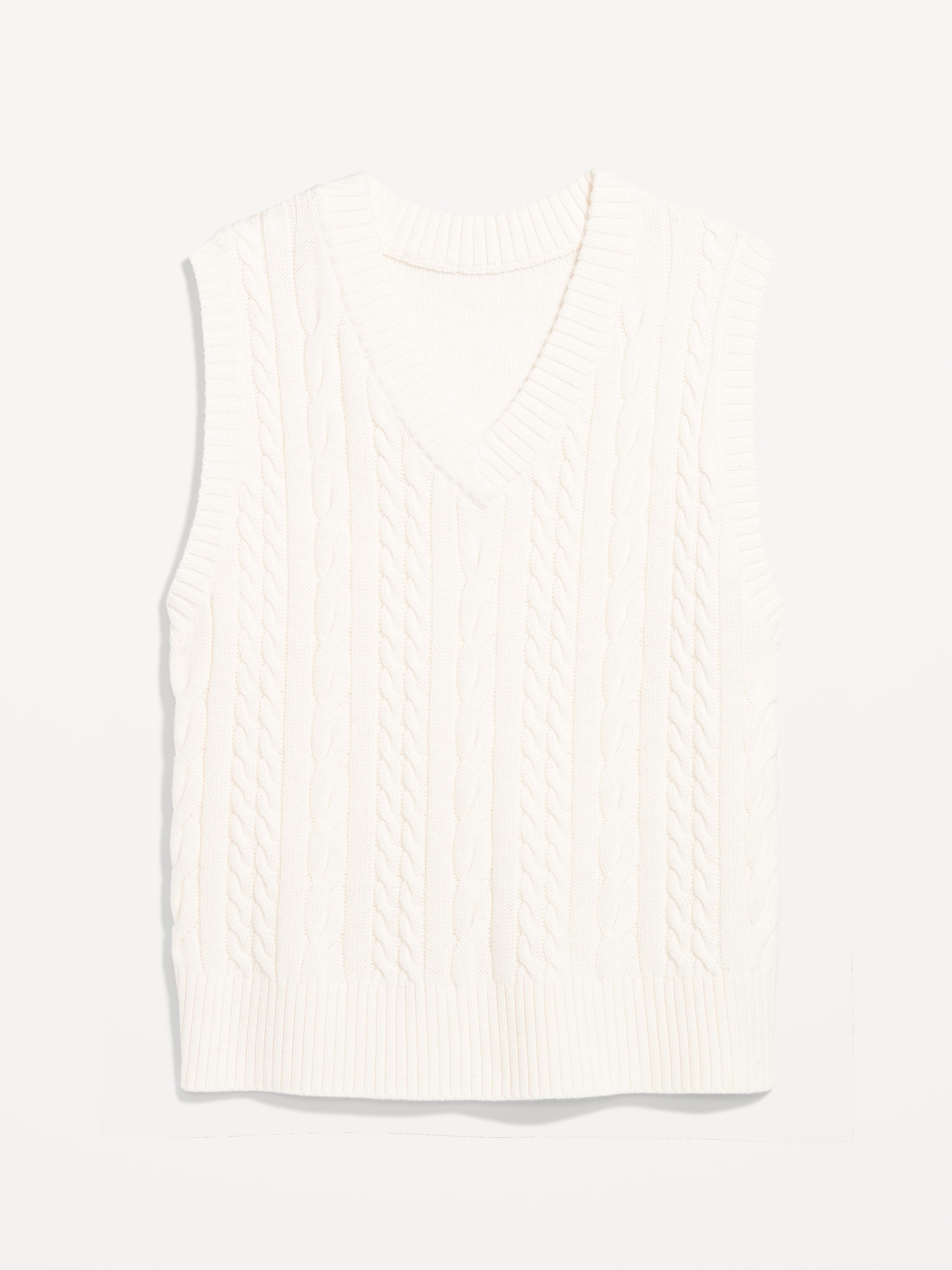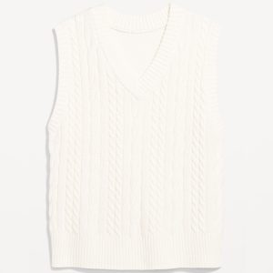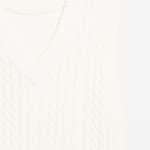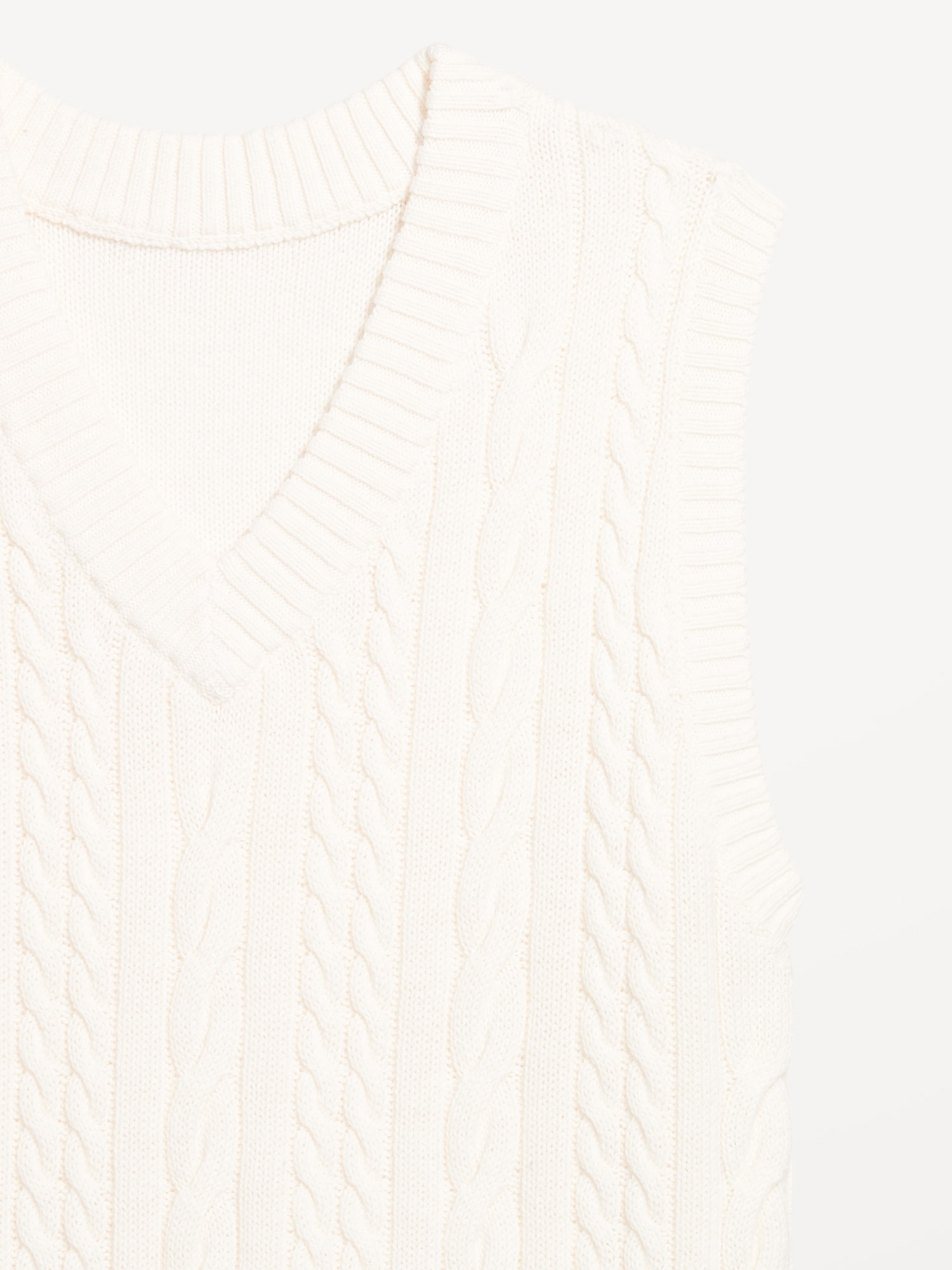 Wool-Blend Cable-Knit Vest: v-neck, cable-knit front, rib-knit trim, #785030