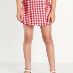 Wrap-Front Linen-Blend Skort for Girls: built-in shorts, elasticized back waist, decorative three-button front, easy pull-on style, #766700
